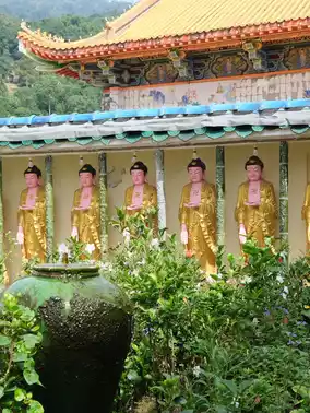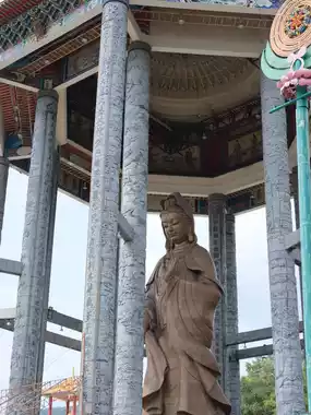 • The temple features a large statue of the Goddess of Mercy, Guan Yin, in the Goddess of Mercy Pavilion. The atmosphere is beautiful and shady. (You can take the cable car up to the temple for a fee.)