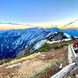 If the weather is good, the scenery on top of the mountain is beautiful, something you rarely see on the ground. The snow-covered peaks of Hotaka are faintly illuminated by the setting sun, giving off a somewhat ephemeral atmosphere. From here, the temperature drops sharply, and the world becomes crystal clear.