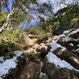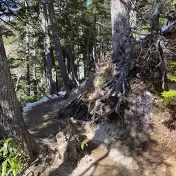 After passing Fujimi-daira Bench, the view gradually improves. Looking ahead, you can see the top of Mt. Yari, and looking behind you, you can see the Matsumoto Basin, which you could see occasionally. Although it's only a little at a time, snow is piling up in places, and you can feel that you are definitely gaining altitude.