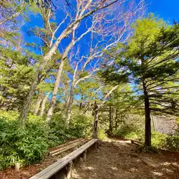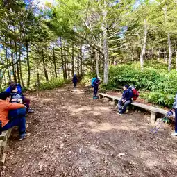 About an hour after starting to climb Kassen Ridge, we arrived at the second bench. For many people, this will be their first resting point. The Kassen Hut lift cable is nearby, so if you're lucky, you can see the cargo being transported.