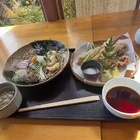 The soba noodles were light and chewy, with more than 10 different ingredients on top, and were so delicious that I finished them in a matter of seconds (๑><๑) tehepero♪