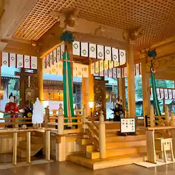 The shrine is also famous for the "Ofune Festival," which shows proof that the people were a seafaring people. The floats are shaped like boats, and these boats are paraded through the town.