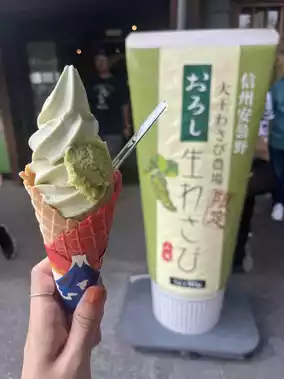 Admission is free, so please stop by when you're touring. The wasabi soft-serve ice cream made with wasabi cultivated at the Daio Wasabi Farm was superb!