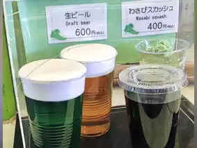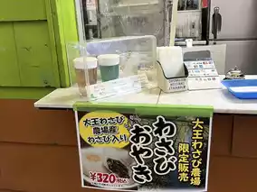 This is a beverage shop located in Daio Wasabi Farm, near the soft-serve ice cream shop. Inside the shop, all drinks with wasabi ingredients are sold, such as wasabi craft beer, wasabi lemon juice, and wasabi coffee. Some people may wonder, do drinks and wasabi go together? Let me tell you, they go together incredibly well and are even more delicious than you think. I recommend you to try it.