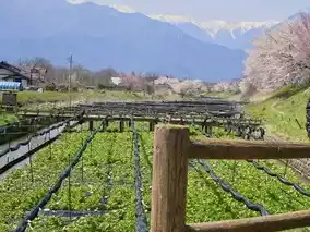 You can rent a bicycle near Hotaka Station and go there. In addition to enjoying the pastoral scenery, you can also see the snow-covered Alpine peaks along the way while riding your bicycle. If it is the season for wasabi to grow, you will see wasabi all over the garden. We visited during the cherry blossom season, and the cherry blossoms along the way were in full bloom, welcoming us. It can make up for the slight disappointment of not seeing the garden full of wasabi.