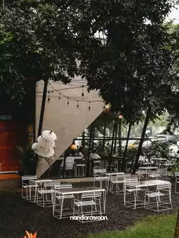 The place is really comfortable, has indoor and outdoor areas. Shady because there are lots of shady trees. It's also suitable as a place to hang out while having a busy breakfast.