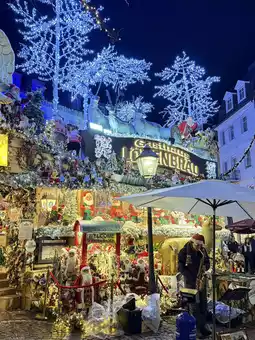 Wander through charming wooden stalls overflowing with Black Forest crafts, handmade ornaments, and irresistible treats like Flammkuchen and cinnamon-dusted almonds. Warm your soul with a cup of spiced Glühwein, then glide across the nearby ice rink or take a dreamy stroll under the glowing canopy of lights in the Lichtentaler Allee.
