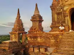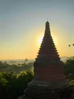 Shwesandaw Pagoda covers a large area, and because of its height and the lack of tall buildings in Bagan, the view from the top is excellent. You can even see the Irrawaddy River. Every day at sunrise and sunset, the place is packed with people eager to witness the beautiful scenery. During sunrise, you can also see hot air balloons drifting into the sky, which is quite a lucky sight.