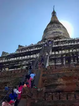 However, after the pandemic, for safety and heritage preservation reasons, climbing pagodas in Bagan has been completely banned. Climbing Shwesandaw Pagoda to enjoy the sunrise and sunset is now a thing of the past, which is quite a pity.
