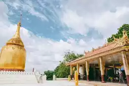 📜Bophaya Temple is located on the bank of the Irrawaddy River in Nyaung U Town, Bagan. It has a unique dome-shaped bell-shaped structure. The river view and the pagoda complement each other at sunset, making it a popular photography spot.