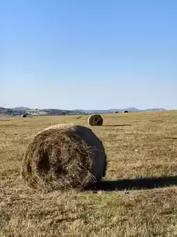 A surprise! On the way to Princess Lake, we saw [round haystacks] (P6-7)! The cattle and horses were ecstatic and got off the bus to take photos. The saying that the scenery of the prairie is all on the road is true. I'm glad I didn't have to queue at the film and television base.