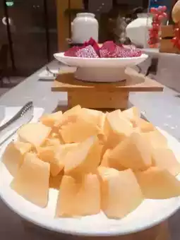 The breakfast restaurant is absolutely divine! Entering is like stepping into a food paradise, with hot buns, freshly fried eggs, fragrant coffee, and everything in between. The highlight is the fruit section—a true paradise for fruit lovers! The sliced watermelon is as red as agate, and the juice explodes in your mouth with every bite. The dragon fruit is plump, dotted with black seeds like stars, and it's incredibly sweet. The cantaloupe is so fresh that you could squeeze out the juice. I could have a whole plate of it!