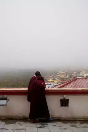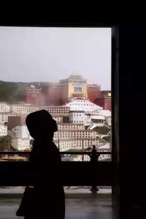 At the railing at the entrance of the Buddhist College, I saw a young monk rubbing his chin with his hand and looking into the distance. I don't know what he was thinking about, because the ten subjects of science, from astronomy to geography, as well as logic and Buddhism, all things in this world are too vast. What on earth could have made him so fascinated? But I think, no matter what he is thinking about, the most fascinating thing in the world is always the infinite thoughts in a person's mind.