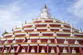 ❸ Photography is prohibited inside the main hall, but the white stupa cluster outside is incredibly photogenic! Wear solid-colored clothing for better photos.