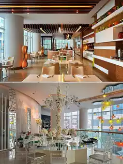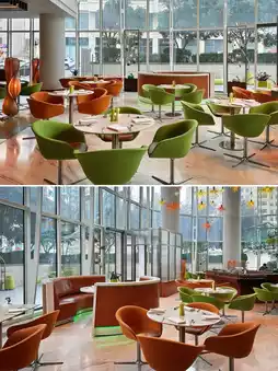 This JW Marriott starts from the reception area and the welcome area, giving people a very gorgeous and high-end feeling ~ the style of large decorative glass chandeliers and interiors reflecting each other, either strong or light, two completely different interiors, lamps constitute a part of its decoration, there is a sense of always being appropriate with heavy makeup and light makeup.