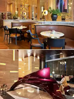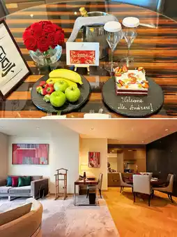 The Ritz-Carlton Baku - the balcony of the suite I stayed in faces the Heydar Aliyev Center designed by Zaha Hadid Architects, with a first-class view! Because it was the Spring Festival, the hotel was very considerate - and even prepared a surprise for the Spring Festival! The red velvet cake with the dragon year pattern is great, the upside-down 'fu' character is written wrong, it is written as 'fu', but the meaning is equally beautiful!