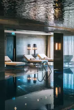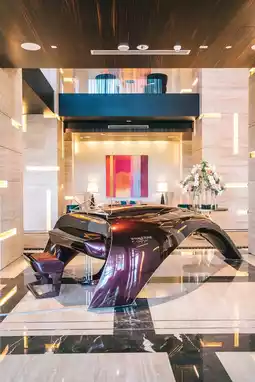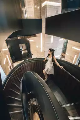 The black spiral staircase in the lobby is particularly eye-catching, and the calm color tones exude sophistication.