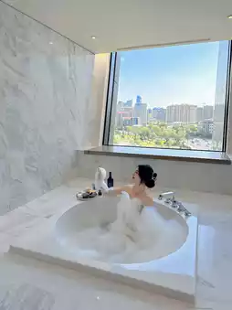 I really like the bathroom, the spacious and comfortable space comes with a round large bathtub.