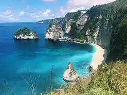 Nusa Penida is one of the most stunning beaches you've ever seen on the island of Bali. One that was taken directly from postcards. On the eastern edge of Nusa Penida, Diamond Beach is an unspoiled white-sand beach with shimmering blue sea. Diamond Beach's view from the top is straight out of a postcard. A fantasy resort is being created by a magnificent white beach, silky blue ocean, limestones, and palm trees. Diamond Beach is unquestionably one of the must-see attractions in Bali.