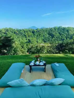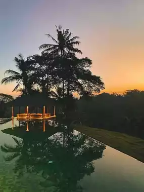 Children attend dance classes here, and religious processions pass through on a daily basis, leading down the steps that flow below Amandari to a 7th-century stone tiger, a pattern repeated throughout the property. Guests can hike or ride the emerald-green countryside from the village, or travel further out to see artisan towns, hidden temples, and the palaces and boutiques of Ubud.