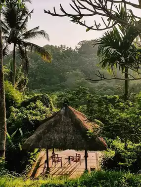 Amandari, Bali's cultural core, is inspired by a traditional village and framed by jungle and rice terraces. Guests are cocooned under bamboo ceilings in alang-alang-thatched houses, some with pools and all with private tropical gardens. Their suites are elegantly decorated with teak and coconut wood.
