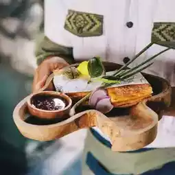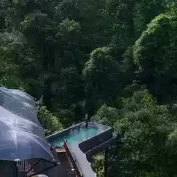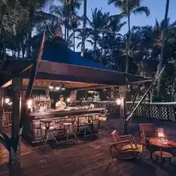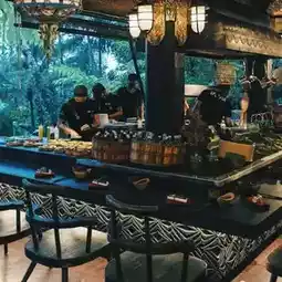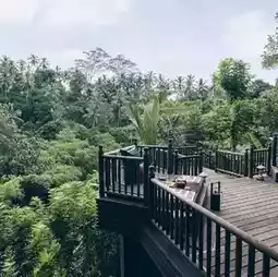 When viewed, this hotel looks like a tree house which is equipped with a beautiful view of the river to the expanse of rice fields and large trees that surround the hotel. Capella Ubud resort also has several restaurants, namely Mads Lange, Api Jiwa, The Mortar and Pestle Bar and The Camp Fire.