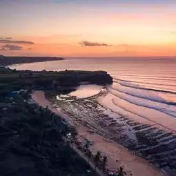 Balangan beach is one of the most famous white sand beaches on the island of Bali. Offering a half kilometer stretch of beach, flanked by high coral reefs. Because of the location of the beach facing northwest, in the afternoon the sunset view at Balangan beach looks very beautiful.