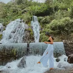 The Tirta Buana waterfall tourist attraction is located in the Banjar Dinas Batudingding, Pegadungan Village, Sukasada District, Buleleng Regency. The distance from the city of Denpasar is about 52 km, while from downtown Singaraja Buleleng about 23 km. This waterfall tourist attraction in Buleleng offers a hidden nature, located in the rural interior, this beautiful rural atmosphere and green forest will make you feel at home, even for a long time. getting to the location takes extra effort by walking along the path, along the way will not be boring, because the surrounding natural scenery is no less interesting than the typical mountain nature with cool air. Because it is still a dirt road, it is more recommended to visit Tirta Buana waterfall in the dry season, because in the rainy season the road to the location will be slippery. The extra struggle for tens of minutes on foot, finally paid off, the treats of beautiful and beautiful natural scenery in the form of natural waterfalls, large and clear water discharge will amaze you. Three natural springs flow on sloping rock cliffs, so that the water does not directly plunge into the reservoir below, the height of the Tirta Buana waterfall is about 15 meters, located in a green valley and away from crowds. So that the Tirta Buana waterfall becomes a hidden paradise that will make visitors feel at home for long. Moreover, the water comes from natural springs, not affected by the rainy season, whenever you visit here the water is always clear. It is worthy to make it the most beautiful waterfall destination on the island of the Gods, Bali. Under the flow of the waterfall, a holding pool was made, a pool with fresh water so this place is also known as Tirta Bhuwana waterfall and Natural Pool. The natural pool from the Tirta Buana waterfall is an interesting place for swimming and bathing. Being in this natural recreation area, you can directly feel the fresh mountain springs, the depth of the pool is up to the neck of an adult, so if you are doing holiday activities with your family, especially your children, take good care of them. In the Tirta Buana waterfall area, there are toilet facilities for the dressing room and also a gazebo for resting and relaxing enjoying the beautiful charm offered by this natural recreation area, there are also selfie photo rides to capture your holiday activities. Being here, your mind will be refreshed and your boredom of daily routine will sink, to find new energy tomorrow.#waterfalls #naturalwonders #natural