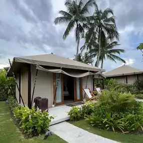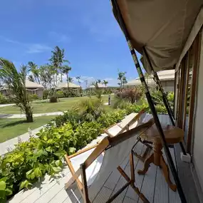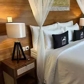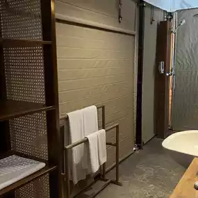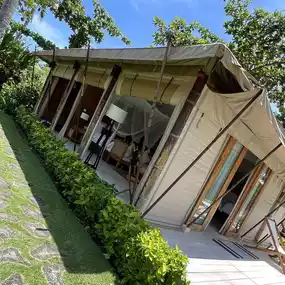 Our room was a high-end tent with AC and maximum security. We were surprised to find that the room was equipped with high and good quality bed and fluffy pillows. AC was powerful enough, bathroom was perfect. Our room even had a hanging daybed at the patio! The only downside was that the hotel does not provide any overseas adapter or usb charging port.