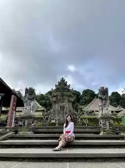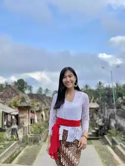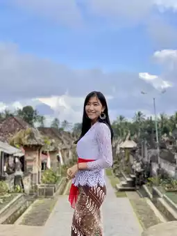 I brought my girlfriend to Penglipuran Village after visiting Tibumana waterfall. She dressed in balinese traditional clothes called Kebaya. There is a wide selection of top and bottom in different colours and patterns which is quite unique because everyone could dress differently. But we noticed that women in the same village would dress in the same colour and batik (the fabric used for the bottom) when attending ceremonies or events.