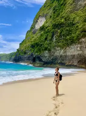 Kelingking beach, also known as T-Rex Bay, is one of the most famous spots in Nusa Penida.