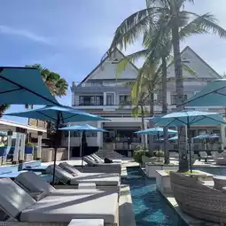 Quite old, some roof and wall need to repaint. Love the spacious rooms and bathtub also view to the beach. Staff are friendly. Pool is excellent. So big also with many beachbench to have sunbathing or wacthing sunsets. Also the wall to lobby with good paintings. Good food at restaurant for breakfast Serve from 06am until 11am. Overall good experience.