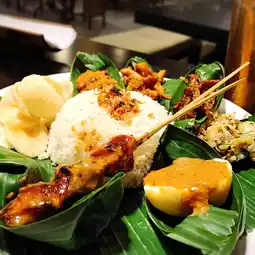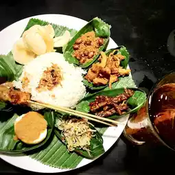 If you visit the town of Ubud in Bali, we recommend lunch at this cafe. The portions are quite large but reasonably priced. You can eat Indonesia's famous nasi campur.