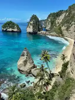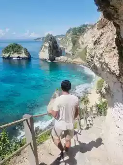 You can also go snorkeling here, as there are tour services available upon arrival. Toilets and dining options are also provided. To be honest, I was quite surprised when I went there and found these facilities available. It's very tourist-friendly, indeed. One thing to note is that when going down to the beach, you need to be careful because the trek can be quite steep.#indonesia #beachlife #travel #bali