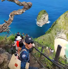 The best time to visit Kelingking Beach is first thing in the morning, or late in the afternoon, to avoid the peak heat of the day. The trek up and down can take over an hour one way, and is in direct view of the sun.