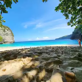 It is truly spectacular and definitely worth the journey. Kelingking Beach is one of the most famous spot of Nusa Penida, often featured in advertisements for Bali and Indonesia. Its unique rock formations resemble the backbone of a dinosaur and it's even nicknamed T-Rex Bay on Google Maps.