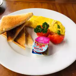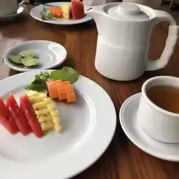Breakfast has two options: Indonesian and American. Indonesian style is nothing more than fried rice and fried noodles, while American style can choose an egg method. Comes with fruit and a large pot of coffee or tea.
