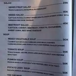Feature: Rich pumpkin soup, only NT$30,000 (NT$63). Shrimp fried rice with lots of shrimps, NT$40,000 (NT$84). Large plate of stir-fried assorted vegetables with rice: NT$40,000 (NT$84). Freshly squeezed tomato juice and orange juice are both priced at NT$17,000 (NT$36).