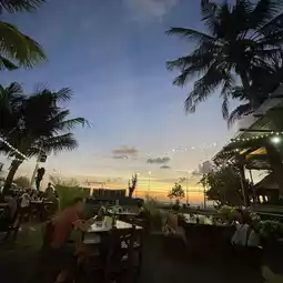 Atmosphere/Facilities: Right on South Kuta Beach, you can't feel the commercial hustle and bustle of Kuta at all. Having dinner here is quiet and comfortable, not to mention the sunset. Some people complain that the food is served too slowly. This time we ordered a Margarita Pizza for NT$75,000 (NT$153), plus two large cups of lemon tea for NT$50,000 (NT$105). We waited for 40 minutes, but we didn't feel that the food was served too slowly at all, because during the process, the light and shadow of the sky kept changing, the colorful clouds in the sky changed into different colors as much as possible, and the travelers passing by moved in the form of silhouettes. The restaurant's music selection was excellent, with soothing piano solos, one after another, which made people relax little by little from head to toe. A 15% tax was added when checking out, and I ended up paying NT$144,000 (NT$300). It was worth it for a romantic dinner at the seaside sunset! After all, what we eat is not just pizza, but also leisure and romance!