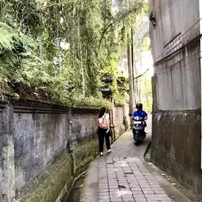 A tiny stone path swirling uphill from town of Ubud to an amazing stunning picturesque not appeared on any tourist map.