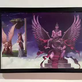 Sculpture or carving of Vishnu sitting on the back of Garuda (Narayana on Garuda). Vishnu will sit on the neck of Garuda. But if it's Thai, Narayana will stand on the back of Garuda, called "Narayana on Suban".