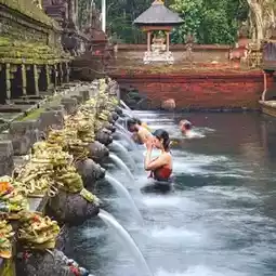 Visit the mystical water temples of Tirta Empul and Tanah Lot, where locals and tourists alike seek spiritual purification
