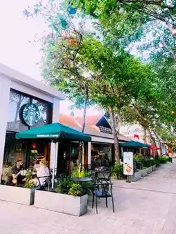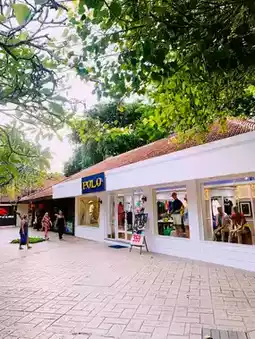 An open mall with familiar shops such as Starbucks, Massimo's Ice Cream, SOGO, and POLO.