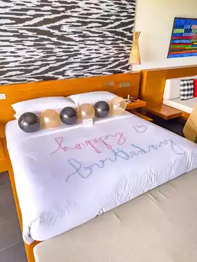 Meanwhile, I had a birthday during my stay, and it was nice that the resort decorated my room with my birthday decoration even though I didn't request it!