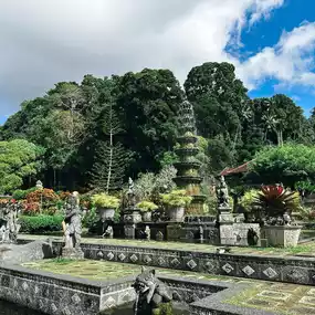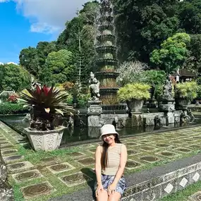 🏯 Today, we will take everyone out of the country to travel to Bali, Indonesia. Which we will take you to is Tirtagangga or Tirta Gangga (Roman: Tirta Gangga), a former royal palace located in the east of Bali Province, Indonesia, in Karangasem District, near Abang District. In Tirtagangga, there are important points of interest such as the Karangasem Royal Water Palace, the bathhouse, and the Patirthan Temple. This one-hectare complex was built in 1946 and was later almost completely destroyed after the eruption of Mount Agung in 1963. Tirtagangga is based on the belief in the Ganga River, the sacred river of Hinduism. The Patirthan Temple is also important as a pilgrimage site. It is a sacred water source for Balinese Hindus. 👍🏻👍🏻 As for this place, there are many places for us to take pictures. There are many beautiful angles. Whether it's the front, there are corners for taking pictures with strange animals such as pythons, bats, and many more. 🐍🐢🦂🦥 After passing the front, we will see many more photo spots, whether it's the middle of the water full of koi fish or the corner with a beautiful fountain. It can be said that you can walk all day and not get bored. 🥰🥰 For those who travel to Bali, I would like to recommend another beautiful place to visit and take pictures that you must not miss, which is here. 💞👍🏻