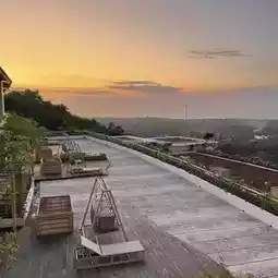 The hotel is located halfway up the hill in the central part of Uluwatu, built on the mountain! The lobby is spacious, using wood and large stones, natural resources as a theme, introducing natural light, creating a leisurely and elegant atmosphere!