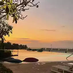 The infinity pool is huge, has plenty of space for guests to sunbathe, and has a wide view, close to the stunning views of the nearby mountains and far away to the spectacular views of the Indian Ocean! You can enjoy fantastic sunset views at dusk, which is unforgettable!