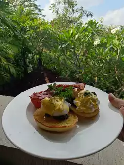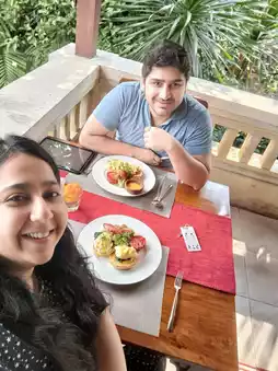 We stayed at Dwaraka Eco Luxury Villas for 5 days and 4 nights. We booked a room with a private pool. It was a wonderful experience. The staff was very friendly and the ambiance was very beautiful. We got a lot of amenities at the hotel. We had free breakfast everyday and we enjoyed pool breakfast for 2 days. They had a fixed menu but everything was very tasty. The hotel had free shuttle service to Ubud Central and back. This shuttle ran every hour, so it was very convenient for us to get by. We let one of the staff know that we were on our honeymoon, he said that he will have a surprise for us soon. The next day, he surprised us with complementary chocolate cake. It was one of the tastiest cakes we'd had in a long time. They also gave us a complimentary 15 minute foot massage at our arrival. Overall, we would recommend this place to everyone. We have zero complaints. This was our first visit to Bali and I'm glad we chose Hotel Dwaraka for the stay.