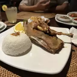 We went there for dinner so couldn’t see some of the distant views. However, the outdoor seatings were considerably cooler at night and perfect for dinner. We ordered half portion of the famous crispy duck with rice , and the spicy prawn which was amazingly delicious. The duck was deep fried and therefore crispy on the outside but still maintained it’s juicy meat. The duck was on the small size- just slightly bigger than a spring chicken. So even lighter eaters should be able to finish the entire portion .