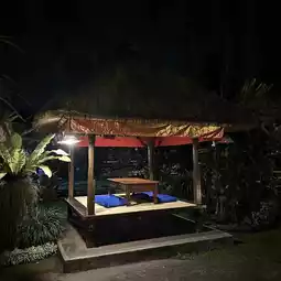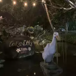 Laka Leke- a lovely hideaway restaurant famous for serving crispy duck - is situated near the Monkey Forest in Central Ubud. Seatings are in the open-air garden under thatched huts with view of lotus pond and rice fields , while listening to birds chirping in the background. Customers may choose the private huts with a smaller table and straw mat and cushions seatings , or the larger and more comfortable table with chairs.